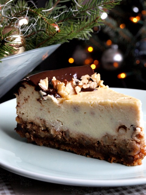Serniki piekę zwykle na specjalne okazje. Uwielbiam je, a odkąd spróbowałam sernika kajmakowego, często zdarzało mi się powtarzać ten przepis. Na święta postanowiłam upiec coś nowego. Z pomocą przyszła mi Dorota i jej przepis na orzechowy sernik. Kilka drobnych zmian i świąteczny sernik gotowy. Kremowy, z pyszną orzechową masą z dodatkiem golden syrup'u. Mój numer jeden na liście ulubionych serników. To właśnie na potrzeby tego sernika przygotowałam złocisty syrop z ostatniego przepisu.